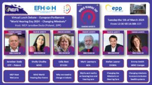 World Hearing Day 2024 was held with the theme of “Changing Mindsets”. EFHOH, together with partners from AEA and EHIMA continued with the tradition of holding a  Parliamentary Lunch Debate.